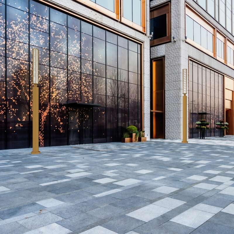 Created to illuminate exterior spaces such as courtyards, terraces, walkways, plazas, and other pedestrian scale areas. This modern variation of the circular light column adds an attractive appeal to outdoor pathways.