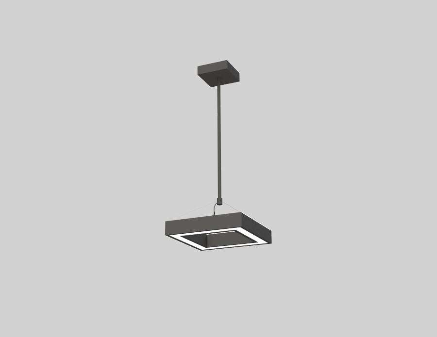 Luminaire housing consists of a square frame made of aluminum extrusion material with opal acrylic lens at the bottom.
