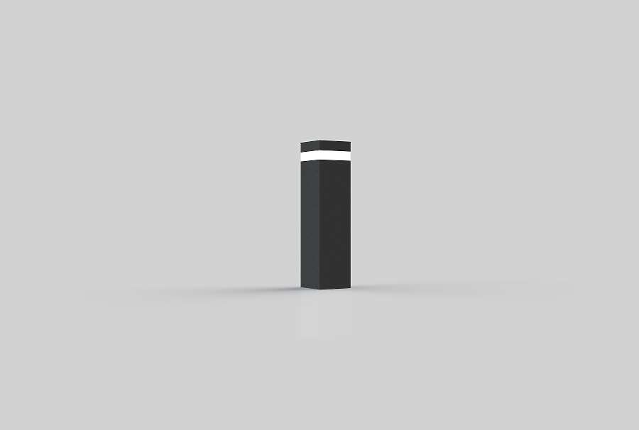 Made from aluminum extrusion. This 6" square bollard has sharp corners, comes in 2 standard sizes, & can be made in different heights. There is a very narrow lens near the flat top - silicone-sealed for weather protection. Also available in the 8" square version and in unlit version.