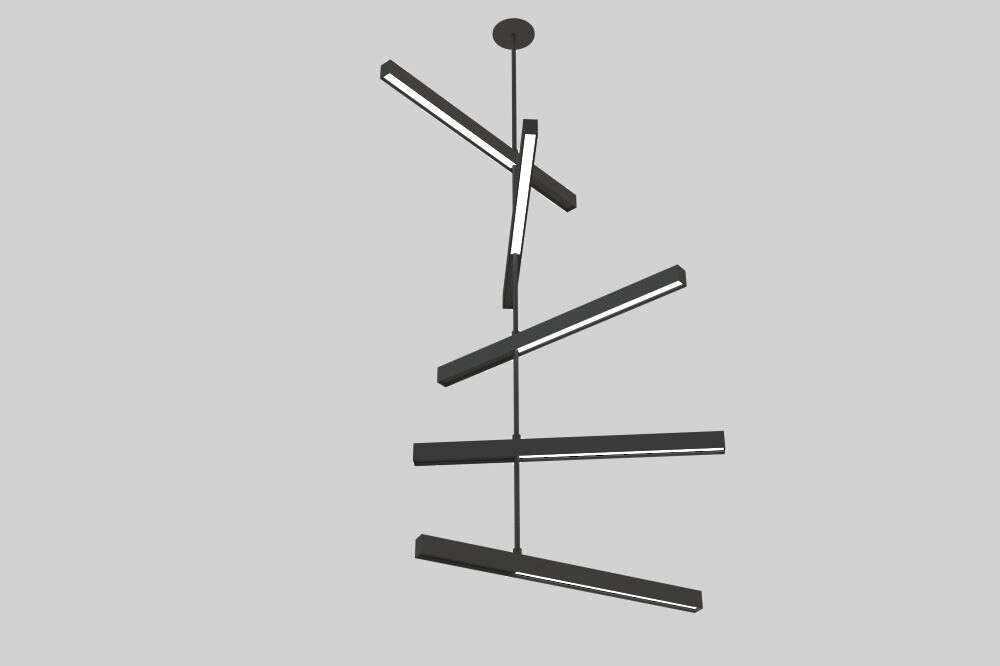 This pendant hangs multiple luminaires along a sturdy stem with individual units at adjustable angles and can pivot 360 degrees around. The slim housing is made from aluminum extrusion. Standard offering is down light.