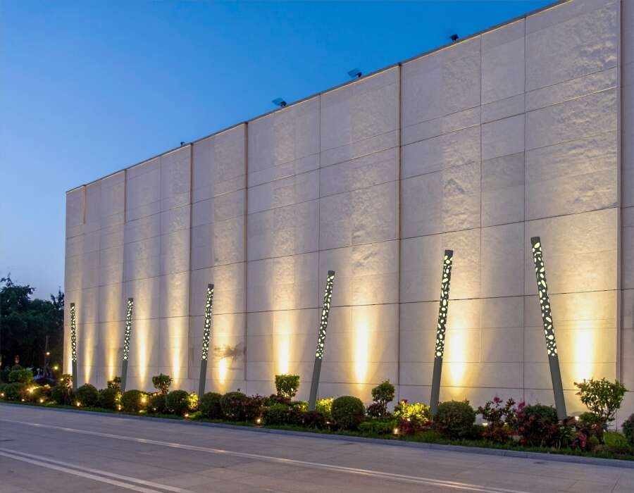 Created to illuminate exterior spaces such as courtyards, terraces, walkways, plazas, front & sides of buildings. This 6" cylindrical, decorative light column adds a groovy aesthetic to outdoor installations.